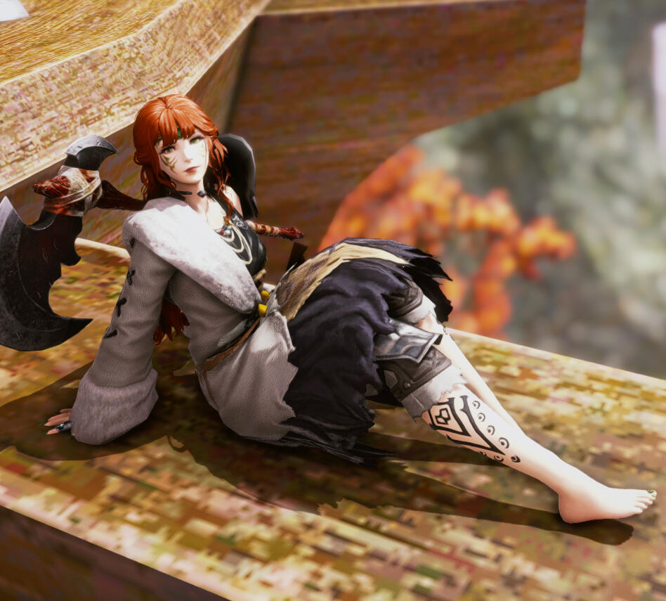 A prize to be won for the nunhs of the J, to be sure. Perhaps this is why they believed the Garleans would receive her as a gift of value that she was when they sent her to improve relations with the Garleans in Ala Mhigo, seeking that they might retain their home in the ancestral peaks. Her sacrifice was in vain; avenged by Rhalgr when a bolt of levin struck down their Emperor for their crimes - but even the Grand Companies viewed this hunt-speaking princess as but a spoil of war. At the first touch, she proved them wrong and coronated herself in blood, fleeing far and away from all those who abandoned her... nursing her wounds in the shadows and biding her rime.